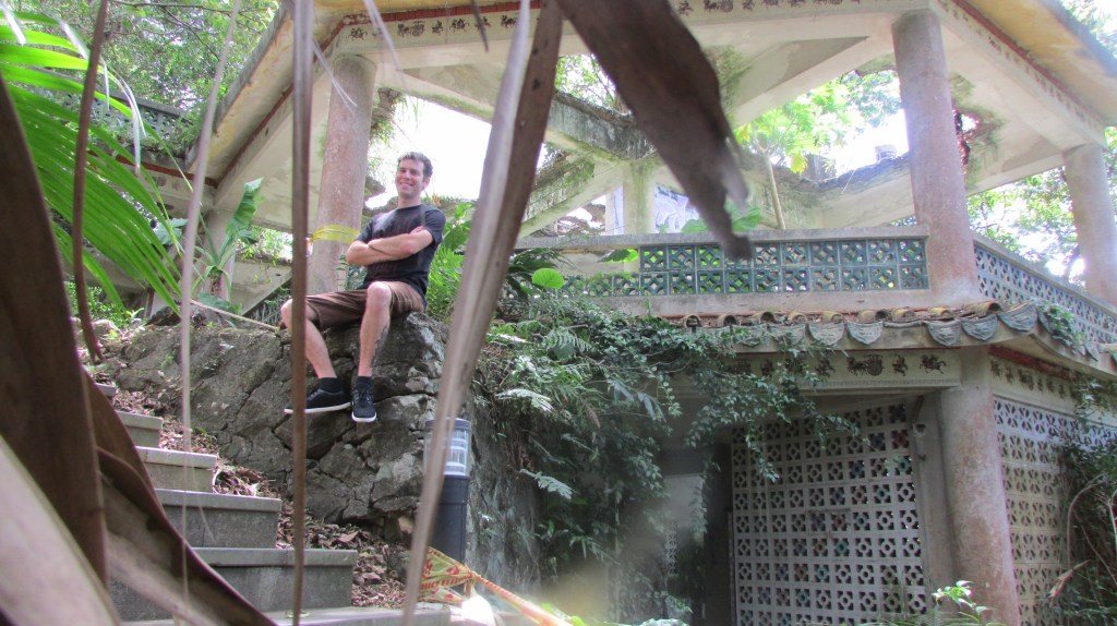 It was an easy hike up except for the intense heat. By the time I got to the top it was almost noon. The view was amazing, and I was rewarded with a panorama of northern Taiwan, including many other mountaintops and the riverway. I met a lovely Polish lady named Ursella and we hiked down together through a thick jungle filled with butterflies and other insects.