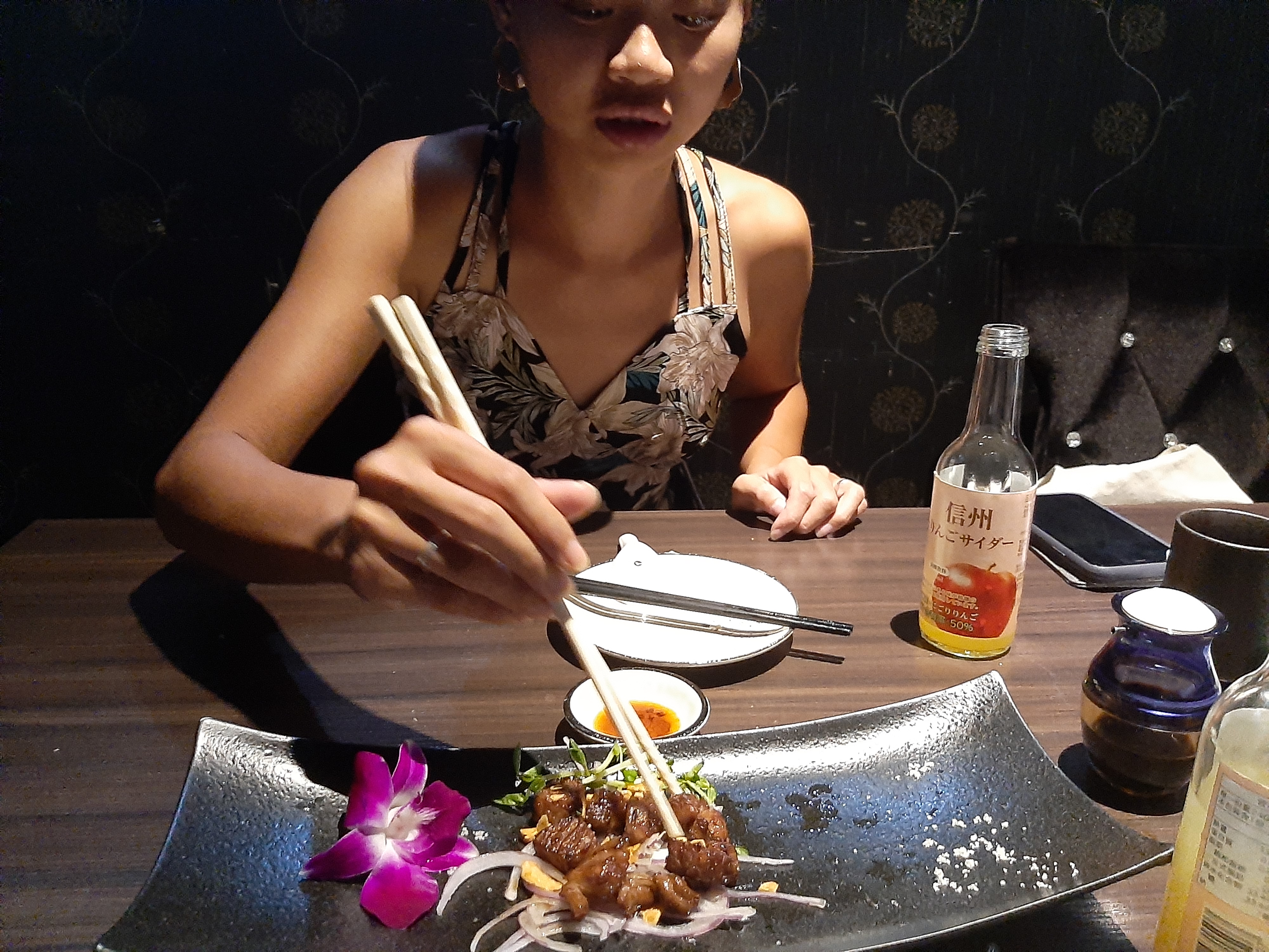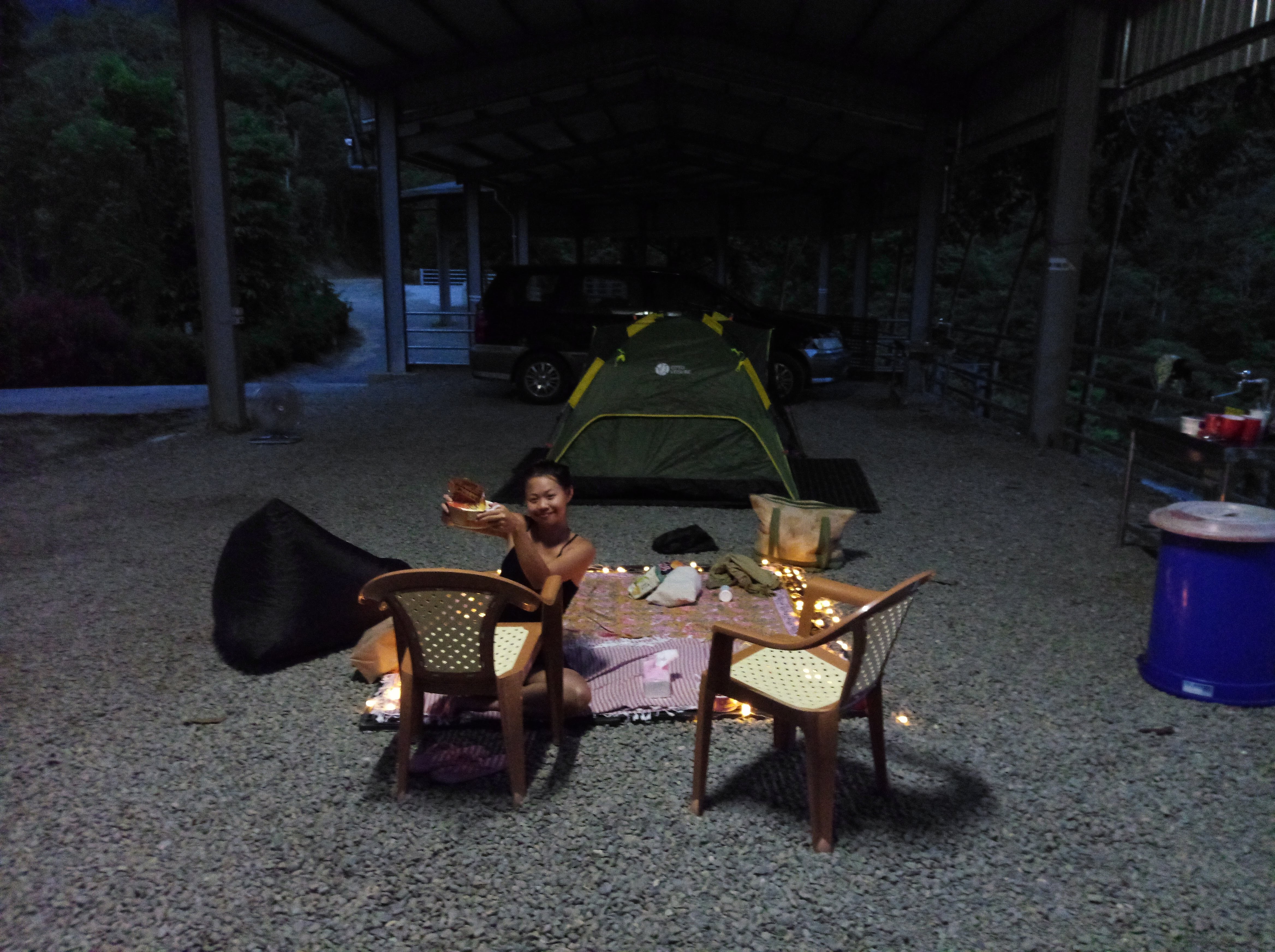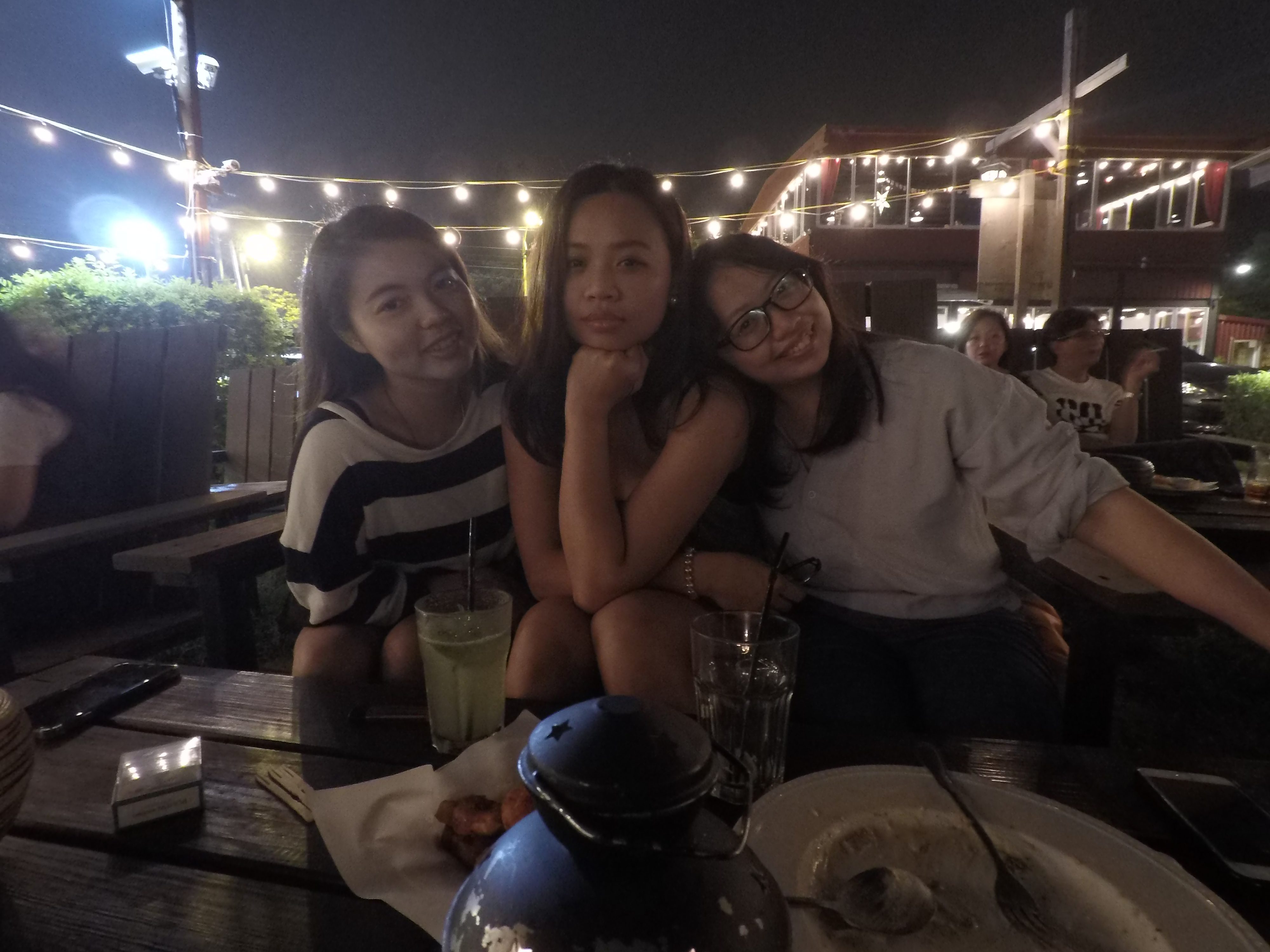 After that, we went to a night market, and I introduced her to some friends.